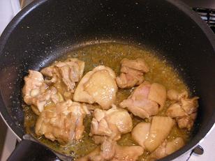 ②切った鶏肉を炒める